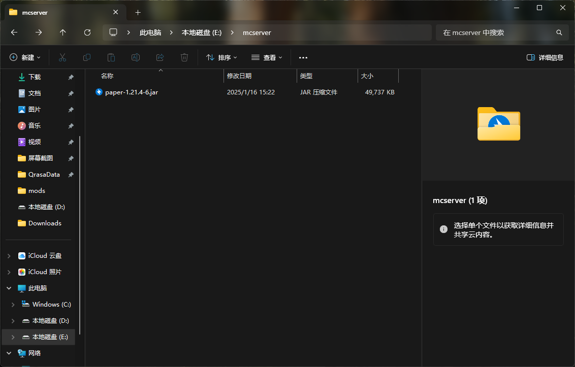 在您选择的目录下创建一个新的文件夹,例如:MinecraftServer