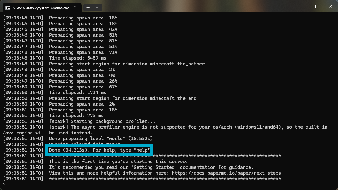 当控制台显示 Done (XXs)! 时表示服务器已就绪